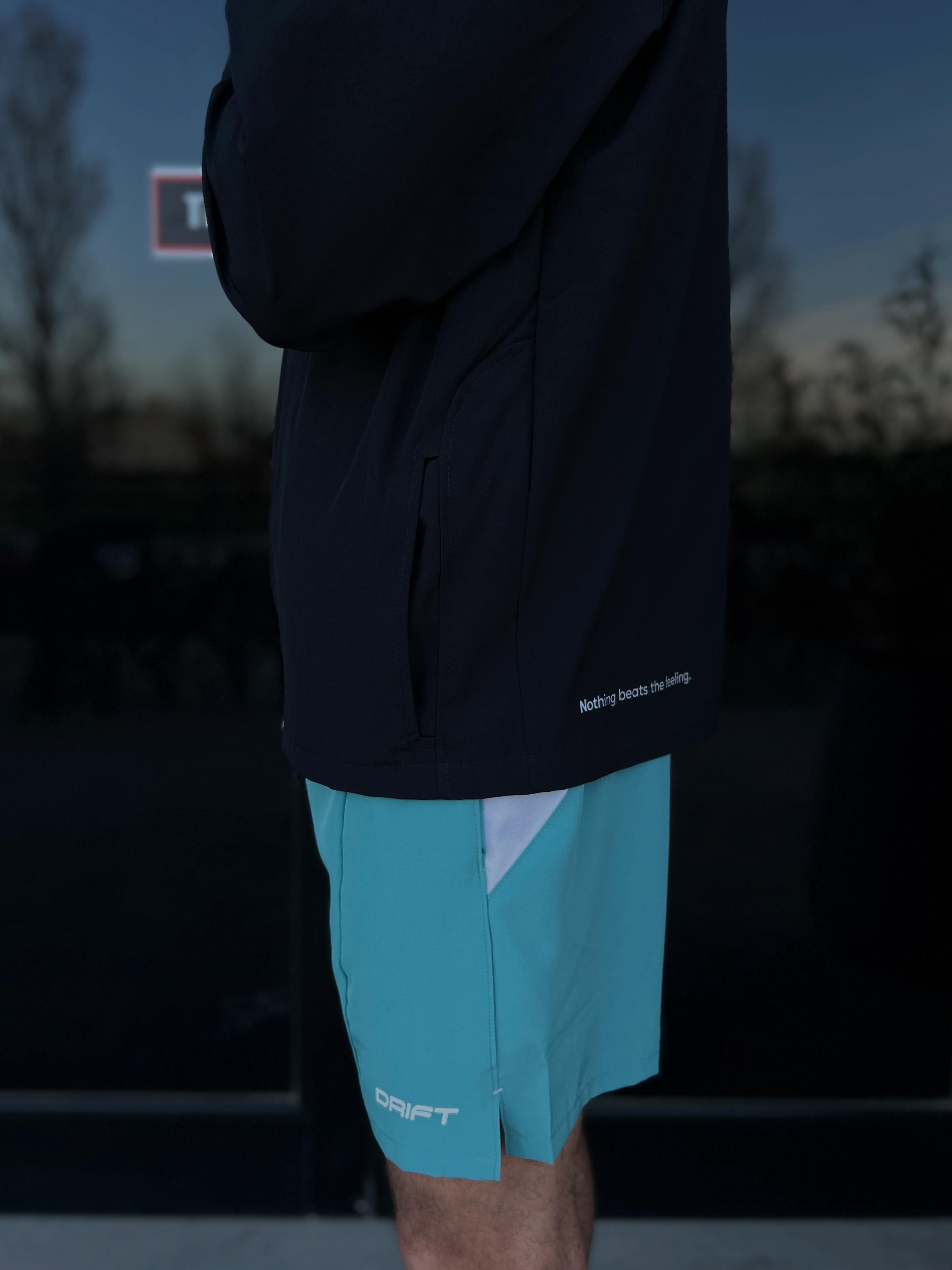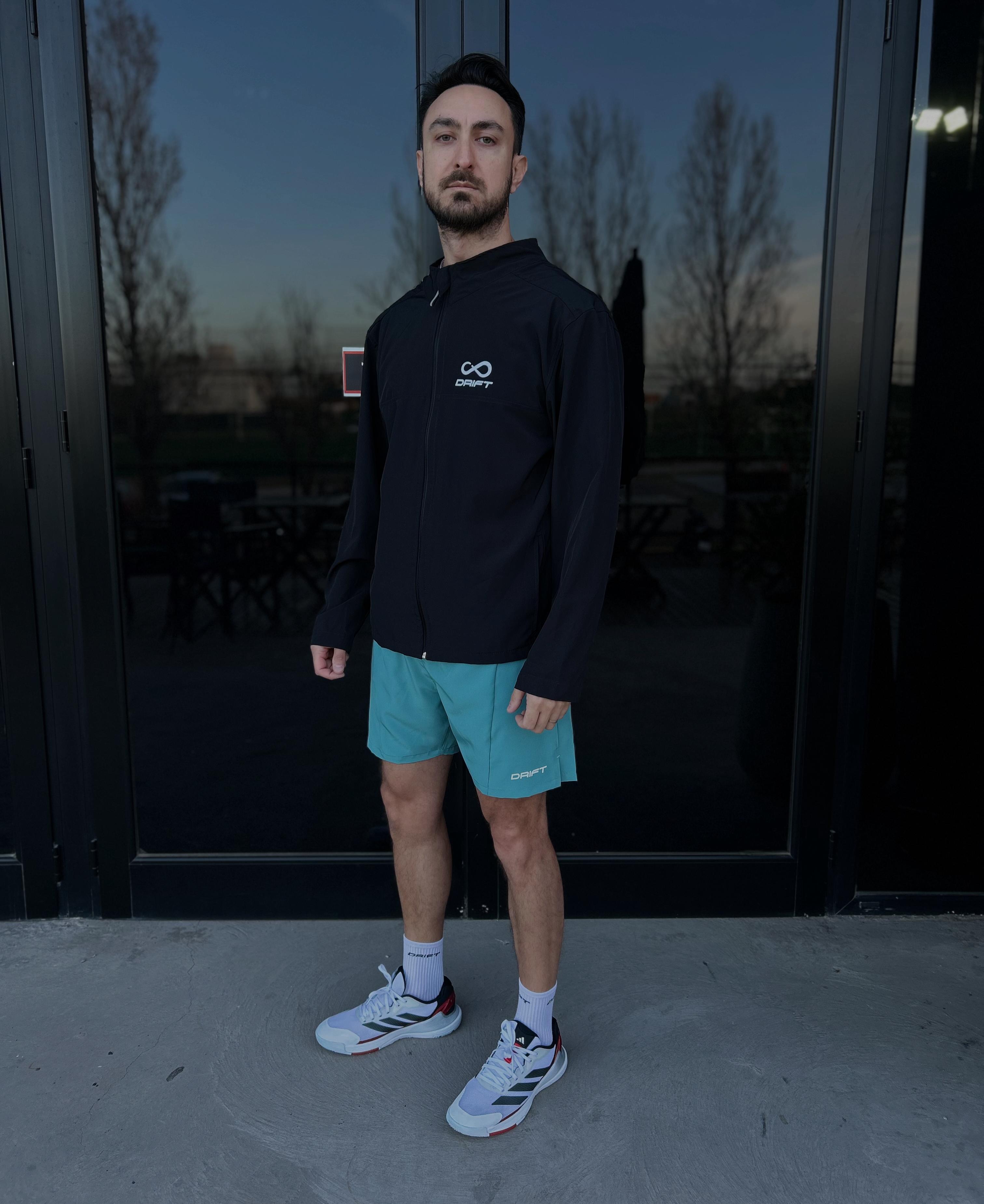 Cuello bajo, 2 bolsillos laterales. Estampados en frente y espalda.